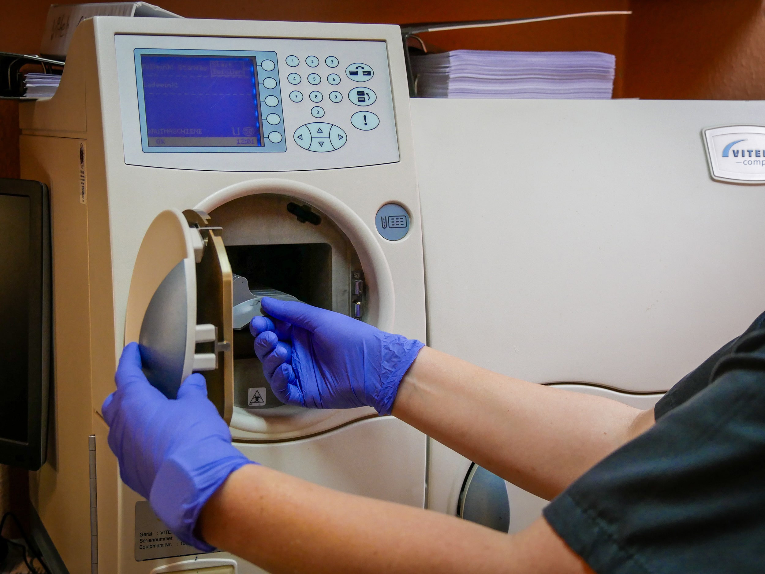 Die Sterilgutaufbereitung in unserer Praxis erfolgt durch einen modernen Sterilisator, um höchste Hygienestandards bei allen medizinischen Instrumenten sicherzustellen.
