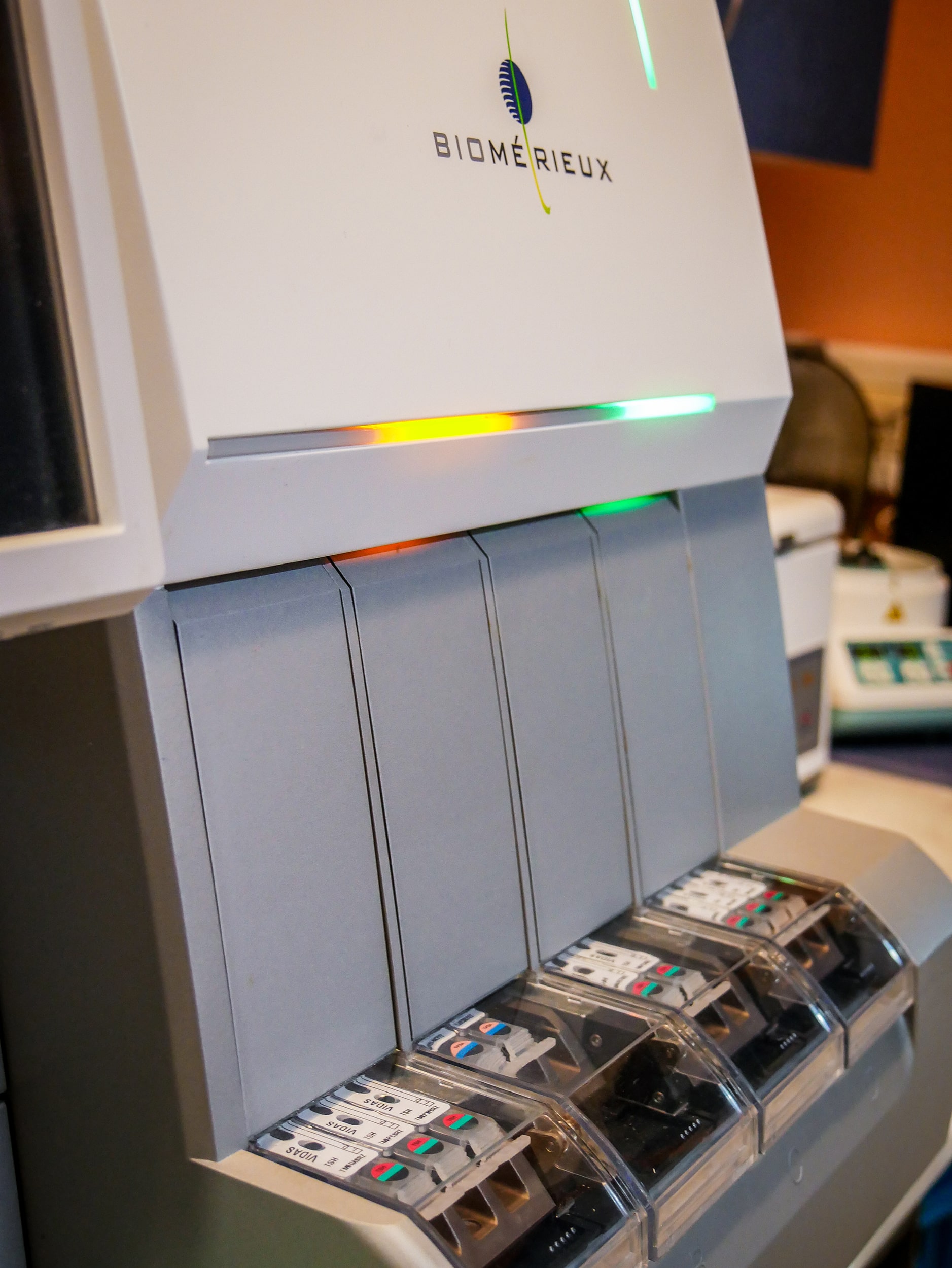Laborraum mit Automatisierter Blutanalyse (Vidas 3) und Automatisierter Mikrobiologischer Keimaustestung (Vitek 2 Compakt)